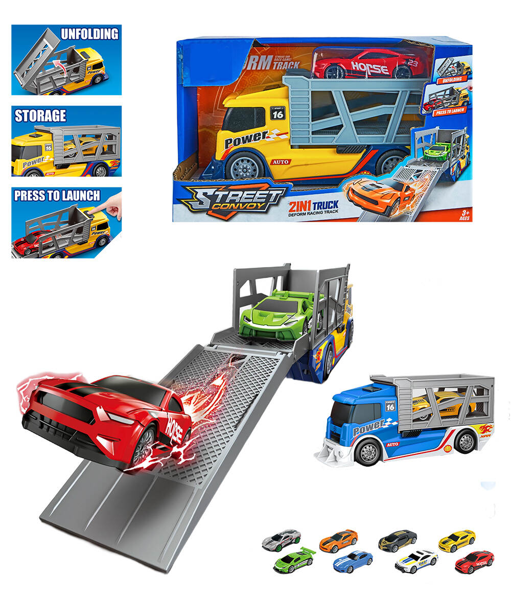 3 In 1 Transforming Launcher & Carrier Truck w/ 1pc Free Wheels Diecast Car