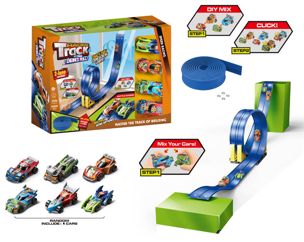 - 5-Meter Dual Track Build & Race Set w/ 4pcs Take Apart Racing Cars