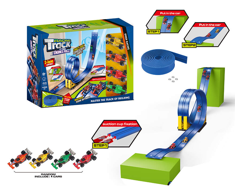 - 5-Meter Dual Track Racing Set with 4pcs Free Wheels Die Cast Formula Cars