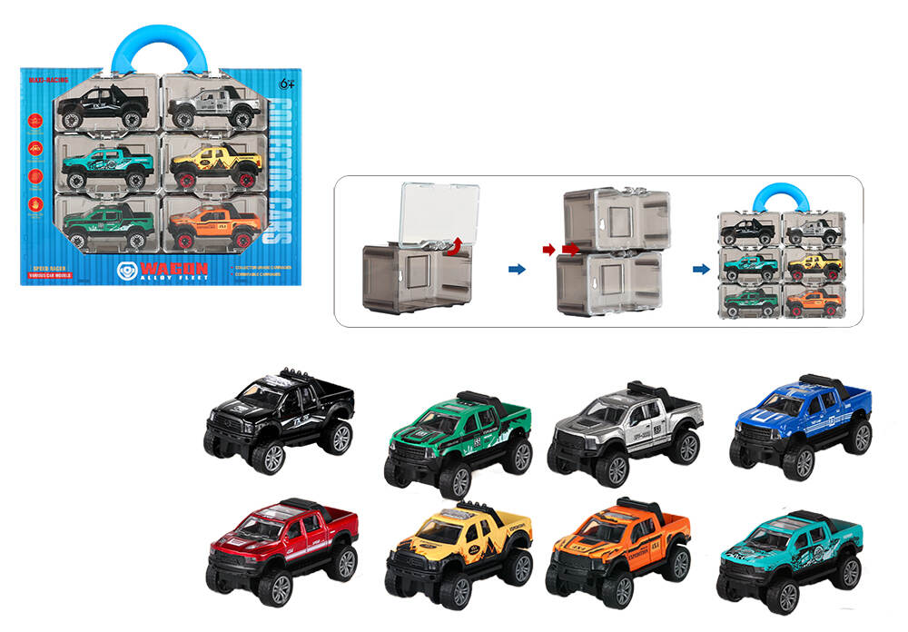 6pcs 2.75 In Free Wheels Die Cast Car w/ Carry Case